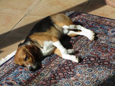 Das war ein aufregender und anstrengender Nachmittag für Seppl (und für mich). So hat Seppl heute Morgen auch gleich ein knappes Stündchen länger geschlafen, bis vor kurzem schon wieder Hundebesuch kam. Diesmal gleich drei große braune Labradore ...