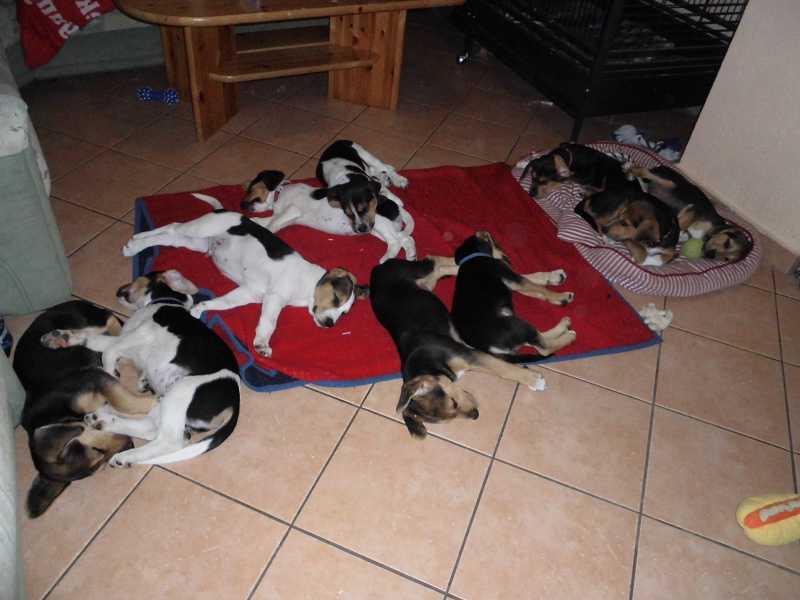 Diana, wie lange (kurz) hält solch eine Ruhe an? Und was macht Mami Caja? Erzieht sie das bunte Völkchen alleine oder hilft einer der anderen Beagle ihr dabei?