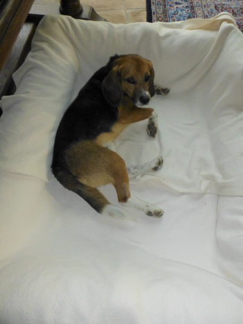 Das war ein aufregender und anstrengender Nachmittag für Seppl (und für mich). So hat Seppl heute Morgen auch gleich ein knappes Stündchen länger geschlafen, bis vor kurzem schon wieder Hundebesuch kam. Diesmal gleich drei große braune Labradore ...