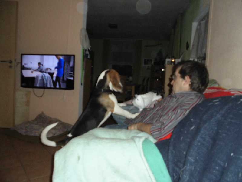 Gromit macht sich richtig gut. Er ist ein ganz lieber sowas von Verschmuster Hund das ist der Hammer. Mit den anderen hier versteht er sich gut. Auch mit Fee. Die Katze mag er auch und würde am liebsten die ganze Zeit mit ihr spielen.