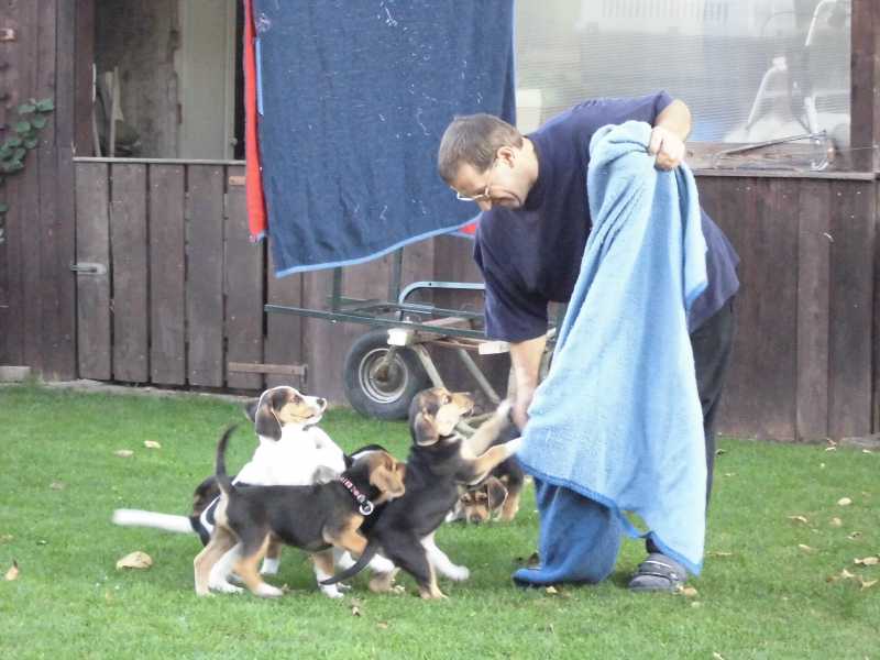 10 Welpen am Hosenbein hängen und dann muss man so aufpassen, wo man hintritt. Der ein oder andere hat schon Mal