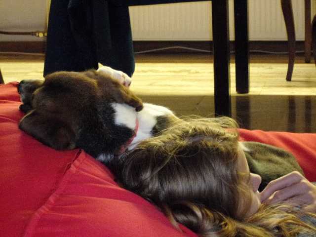 Fürsorglicher Hund :P Hält Dir den Kopf frei :lol: :lol: