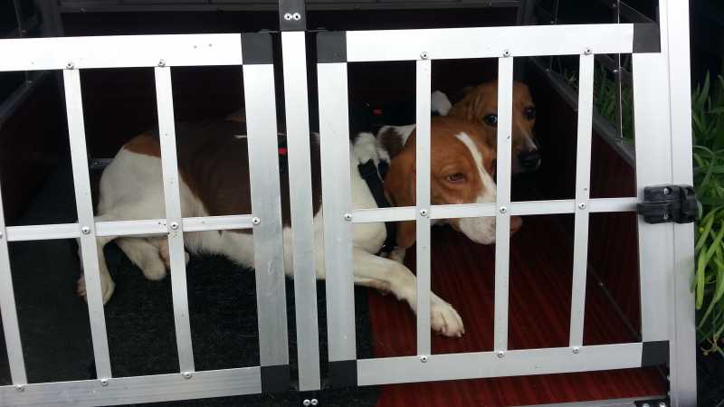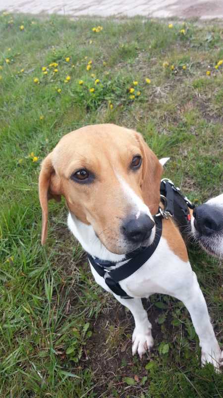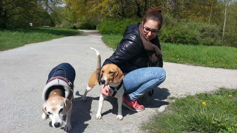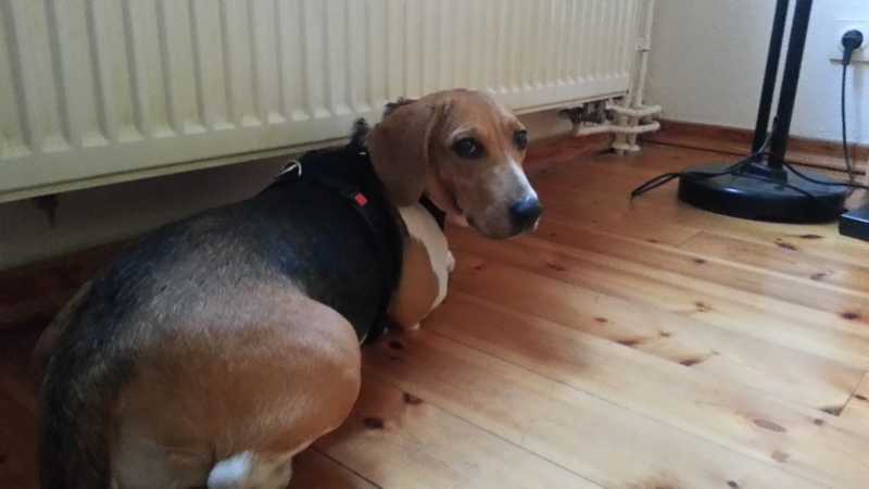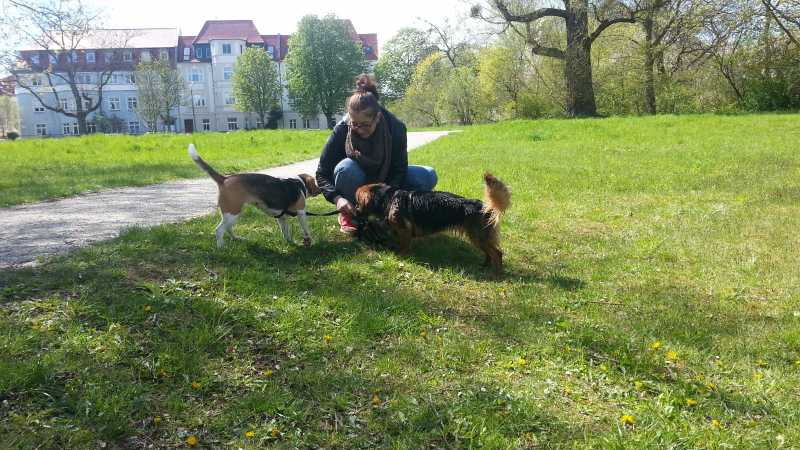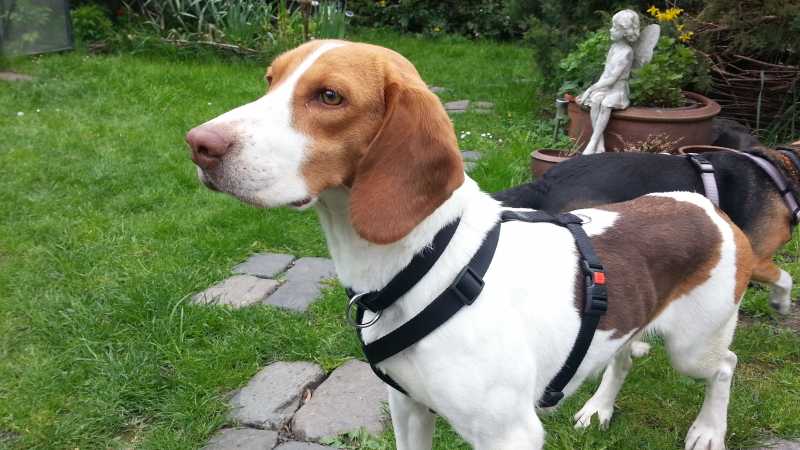 Nach ihrem kurzen Zwischenaufenthalt bei Ursel und Harald ging die Reise für Tiffany und April (nun Flocke) weiter Richtung Osten. Flocke ist vor Schreck gleich mal läufig geworden und wie es sich für Zimmergenossinnen ziemt, hat nun auch Tiffany nachgezogen. Während sich Flocke im hübschen Übergabegarten im Harz äußerst zurückhaltend zeigte, war Tiffany vergleichsweise aufgeschlossen. Sicher scheu, aber doch auch neugierig und an Aufmerksamkeit interessiert. Sie hat immer wieder die Nähe der Menschen gesucht, die genauso zahlreich im Garten wuselten wie das ganze Beaglezeugs.