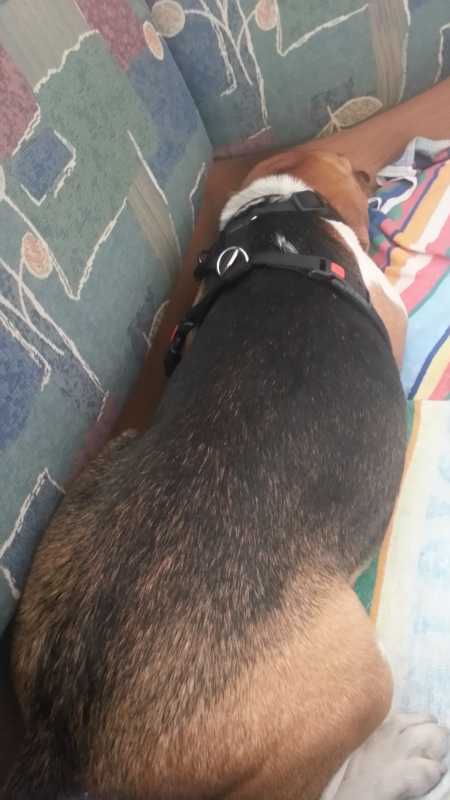 Nachdem sie gestern heftigen Durchfall hatte, war heute alles wieder gut. Kohle und Diät haben wohl schnell angeschlagen. Ansonsten habe ich äußerlich nichts bemerken können, was auf irgendwelche gesundheitlichen Probleme schließen lässt. Nach einem Stinkepansen-Betthupferl schläft sie nun an mich gekuschelt wie ein Stein.