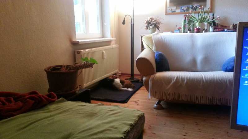 Auch in der Wohnung der PS hat sie sich nach kurzem Schnüffeln in eine Ecke gelegt - und ist da mehr oder weniger auch immer geblieben.