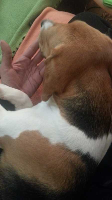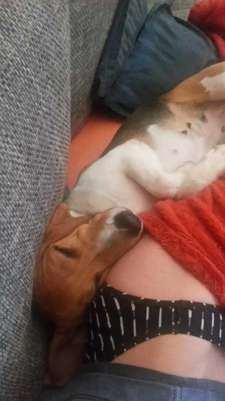 Am Nachmittag stand zufällig das monatliche Dessauer Beagletreffen an. Dachte, wenn schon, denn schon - probieren. Da das Wetter total mies war - zumindest laut Wetterbericht - ist dieses Mal kaum jemand gekommen. Waren es im März so um die zwanzig Hunde, kamen diesen Sonntag außer Tiffany und meiner Lucie nur noch zwei weitere Hündinnen. Das war mir in diesem speziellen Fall ganz recht. Klein aber fein für die Neue. Wenn man die Fotos und die Videos in diesem Album gesehen hat, muss man nicht mehr viel sagen. Absolut entspannt im Grünen, Spaß am Laufen, Schnüffeln toll, lässt sich rufen, kommt heran, Leckerlies ja, Sitz (ohne Kommando natürlich) ja, Menschen sind interessant, Hunde sind keine Feinde. Eigentlich war es verblüffend, wie unproblematisch das ging. Rosa Pfötchen hat sie ja noch, aber die Strecke von etwa fünf Kilometern hat sie nicht (sichtbar) gefordert. Autofahrt hin und zurück auch keine Problem. Sie will zwar weder gern rein noch anschließend raus, lässt es aber mit sich machen. Im Auto auf der Rückbank liegt sie unbeweglich und stellt sich wohl tot. Nase in die Ritze zwischen Sitz und Rückenlehne gepresst. Scheint den Vogel Strauß zu machen und den Kopf in den Sand zu stecken. Als wir vor der Runde noch zum Kaffeetrinken bei der "Oma" waren und ich sie auf die Sitzbank gehoben hatte, hat sie sich nach kurzer Zeit auch dort in die Ritze geklemmt - und geschnarcht.