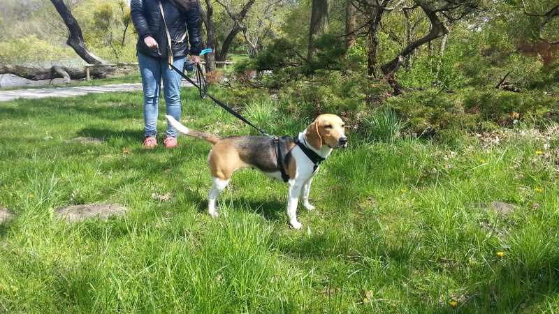 Nach wie vor kauerte sie unbeweglich in ihrem Eckchen. Als ich mit Lucie kam, um sie zum Spaziergang abzuholen, wurde sie aber plötzlich aufgeschlossen und trabte durch die Wohnung. Der Spaziergang verlief wieder super. In belebter urbaner Umgebung hat sie schon immer wieder etwas Angst. An geparkten Autos vorbei- oder gar zwischendurch zu laufen, ist nicht ganz einfach. Geräuschempfindlich ist sie auch. Die Schreckhaftigkeit hält sich aber in Grenzen - panisch kenne ich von meinen früher anders. Sobald man die Straßen hinter sich gelassen und die grüne Weite erreicht hat, merkt man ihr ihre Vergangenheit überhaupt nicht an. Begleithundeprüfung würde sie noch nicht schaffen, aber es ist - sicher mit kleinen Ausnahmen - kein Problem, sie an der Leine in die gewünschte Richtung zu führen. Wenn sie nicht hinten schnüffelt, dann gern möglichst weit voraus, sie läuft schneller als der gewöhnliche Mensch. Aber ohne großen "Druck" lässt sie sich zum Weitergehen, Richtungswechsel usw. bewegen.