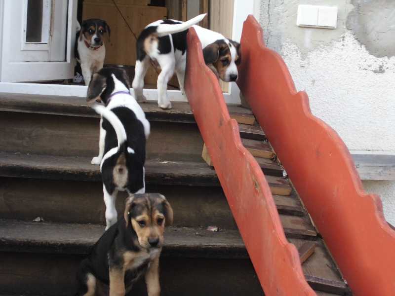 10 Welpen am Hosenbein hängen und dann muss man so aufpassen, wo man hintritt. Der ein oder andere hat schon Mal