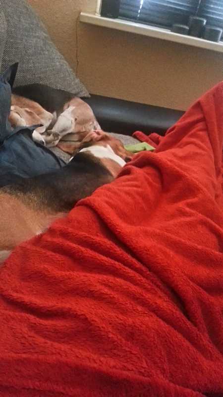 Zu dem Tag kann ich nicht viel sagen. In der PS hat sie mehr oder weniger nur in ihrer Ecke im Flur gelegen. Kam nicht ins Zimmer. Hat in der Wohnung weder mit Hund noch mit Mensch interagiert. Läufigkeit mit Blut hier und dort hat eingesetzt. Fressen und Trinken ja.